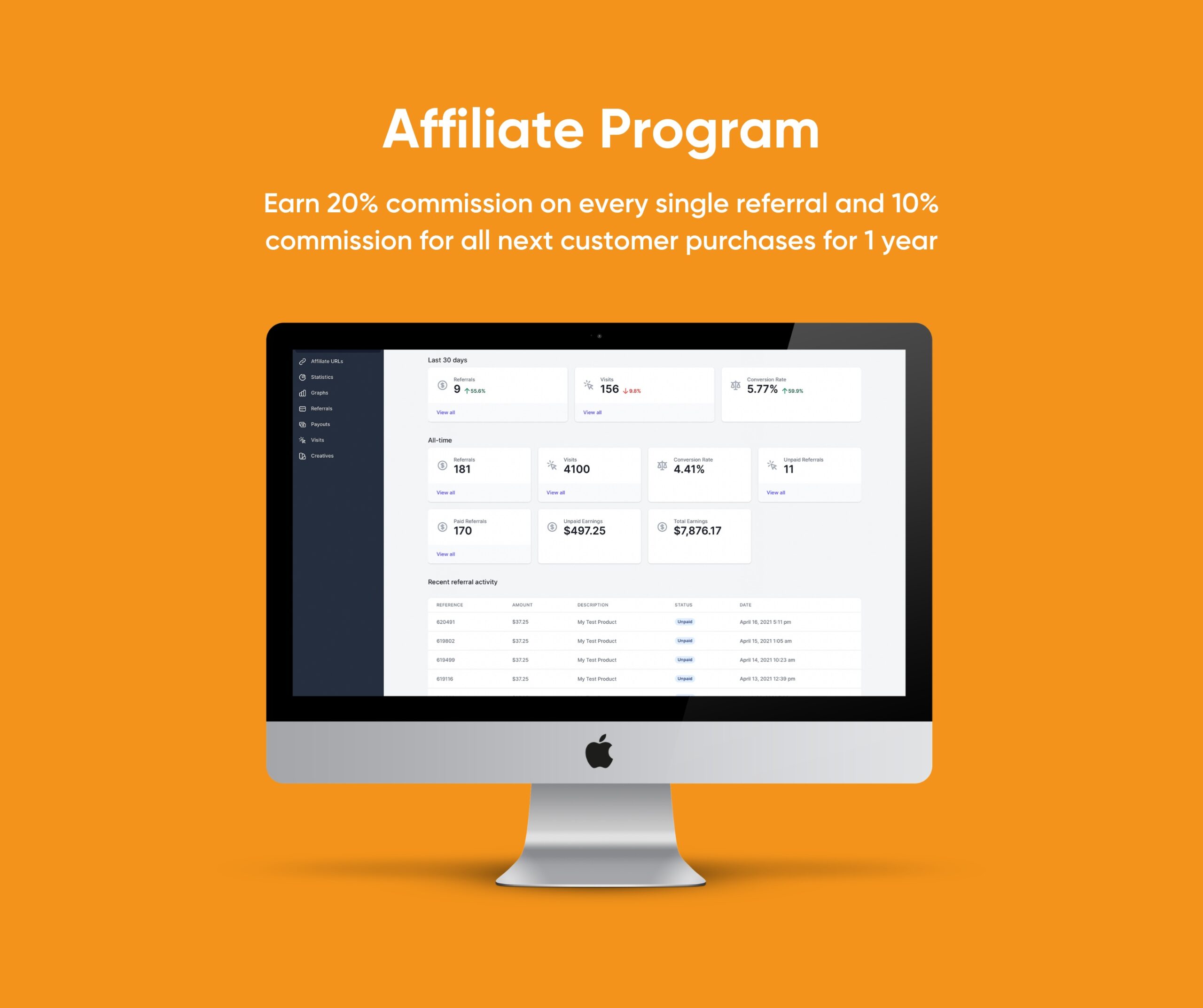 Earn 20% affiliate commission on every single referral that results in a successful sale. For a year, get 10% of each payment made by the referral you brought in.